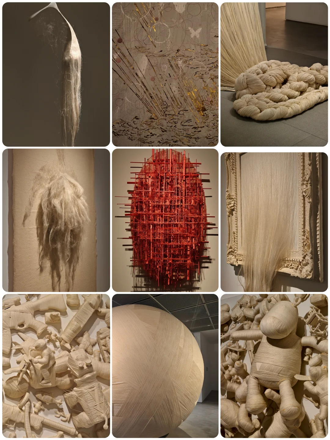 Right as I entered the exhibition hall, I saw a silhouette of a “body” made of cotton thread, looking like an X-ray that’s been stitched back together by hand. Standing there immediately reminded me of being with family for a CT scan last year. The artist really hits hard with the personal experience, no subtlety there.