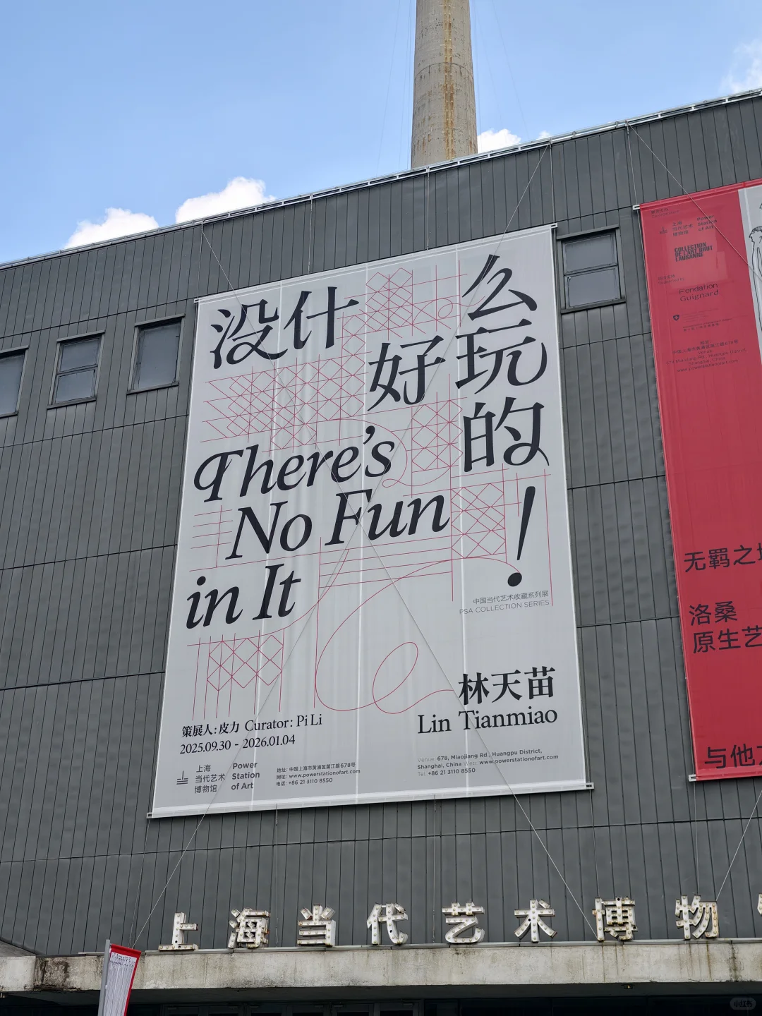 On the last day of National Day, I was just planning to take a casual stroll around Shanghai, but then I came across a post on Xiaohongshu: “Free new exhibition | This exhibition is really fun,” but it’s called “Nothing Fun.” Who could resist that? So I quickly took a taxi to 678 Miaojiang Road, Huangpu District – Shanghai Museum of Contemporary Art. The expressway was smooth, and as soon as I got out, I looked up and saw that iconic building that looks like a big chimney. That put my mind at ease – at least I wasn’t coming for nothing.